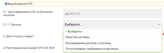 25. Ввод бумажной исправленной СНТ и бумажной СНТ на возврат товара по причине «Простой системы».