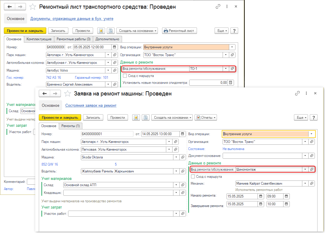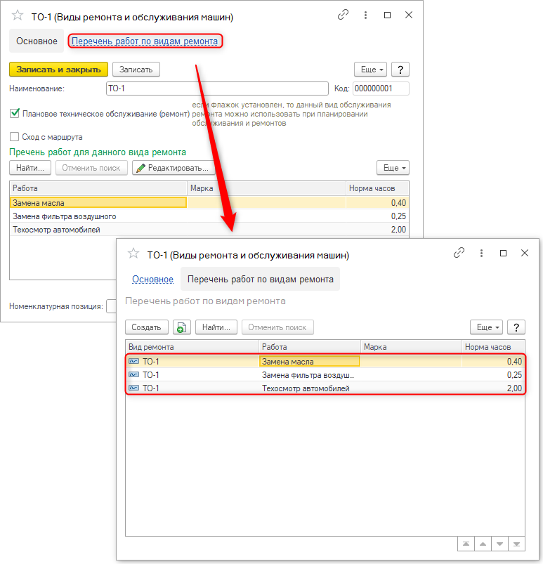 Элементы справочника используются для описания разных ремонтных работ:
