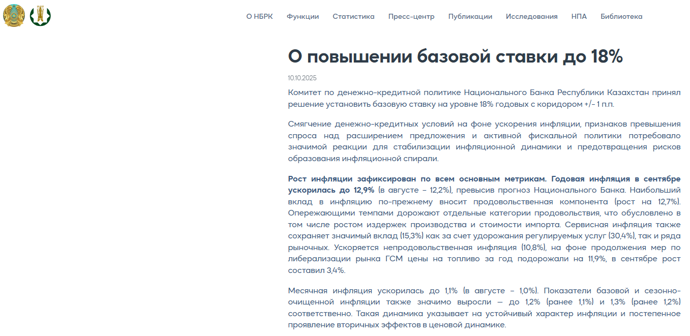 - Изменение ставки вступает в силу с 13 октября 2025 года