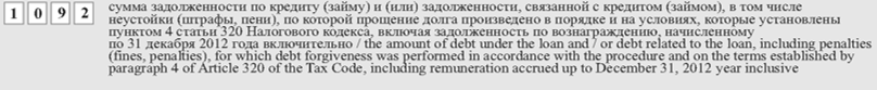 - Добавлен код 1092 – сумма задолженности по кредиту, по которой прощение долго произошло в соответствии с п. 4 ст. 320 НК РК.