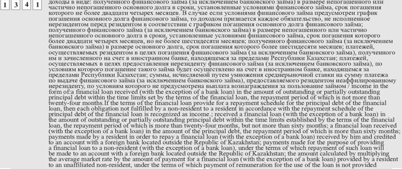 - Добавлен код 1341 – доходы по полученным фин. займам пп. 39) п. 1 ст. 679 НК РК.
