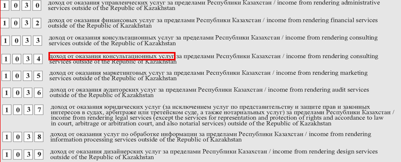 - Добавлен код 1041 – доход от оказания рекламных услуг за пределами РК.